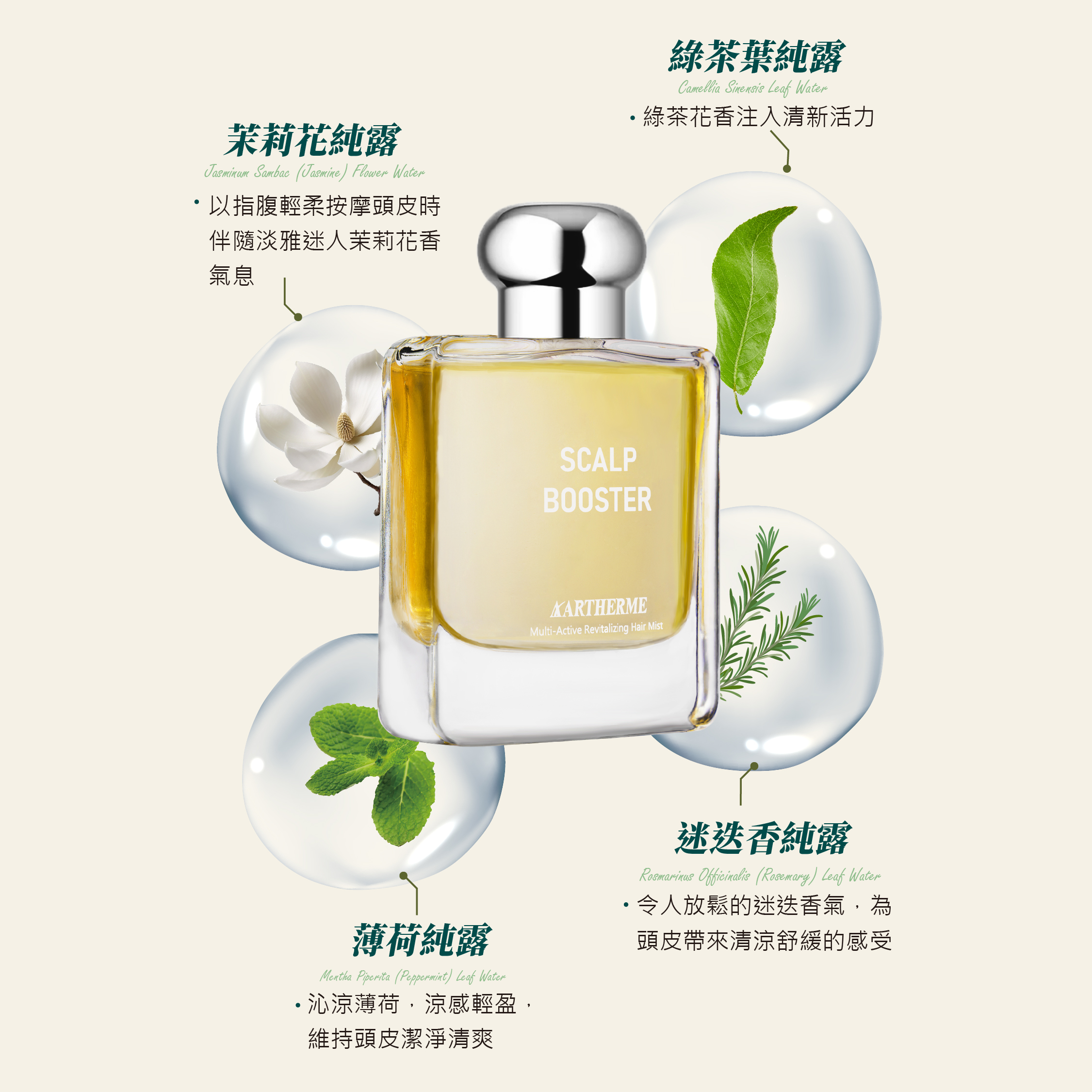 綻放清新茉莉花與綠茶花香,充滿細膩香氣。結合薄荷帶來的涼感清爽,喚醒頭皮,在養護同時賦予充沛活力與散發迷人氣息。